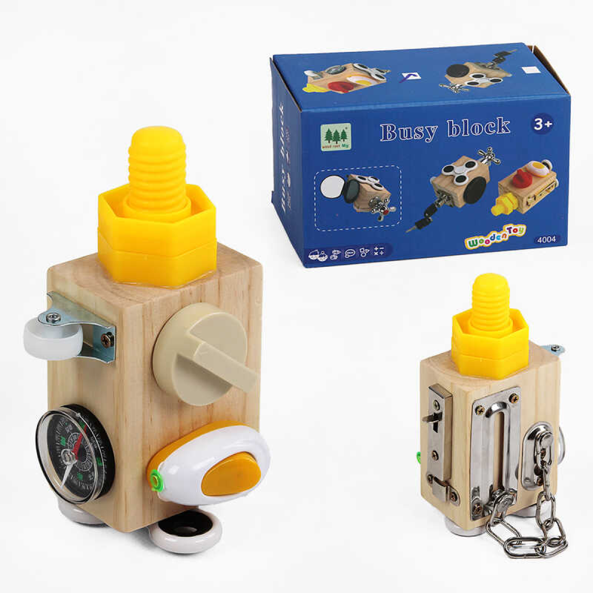 Логічна гра-бізіборд С 61672 (36) дерев’яний куб, 9 міні-ігор, в коробці