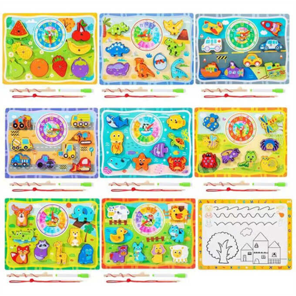 Логічна дошка C 73327 (60) дерев’яна, вкладиші, магнітна риболовля, шнурівка, аналоговий годинник, дошка “пиши-витирай”, маркер, у плівці, ВИДАЄТЬСЯ ТІЛЬКИ МІКС ВИДІВ