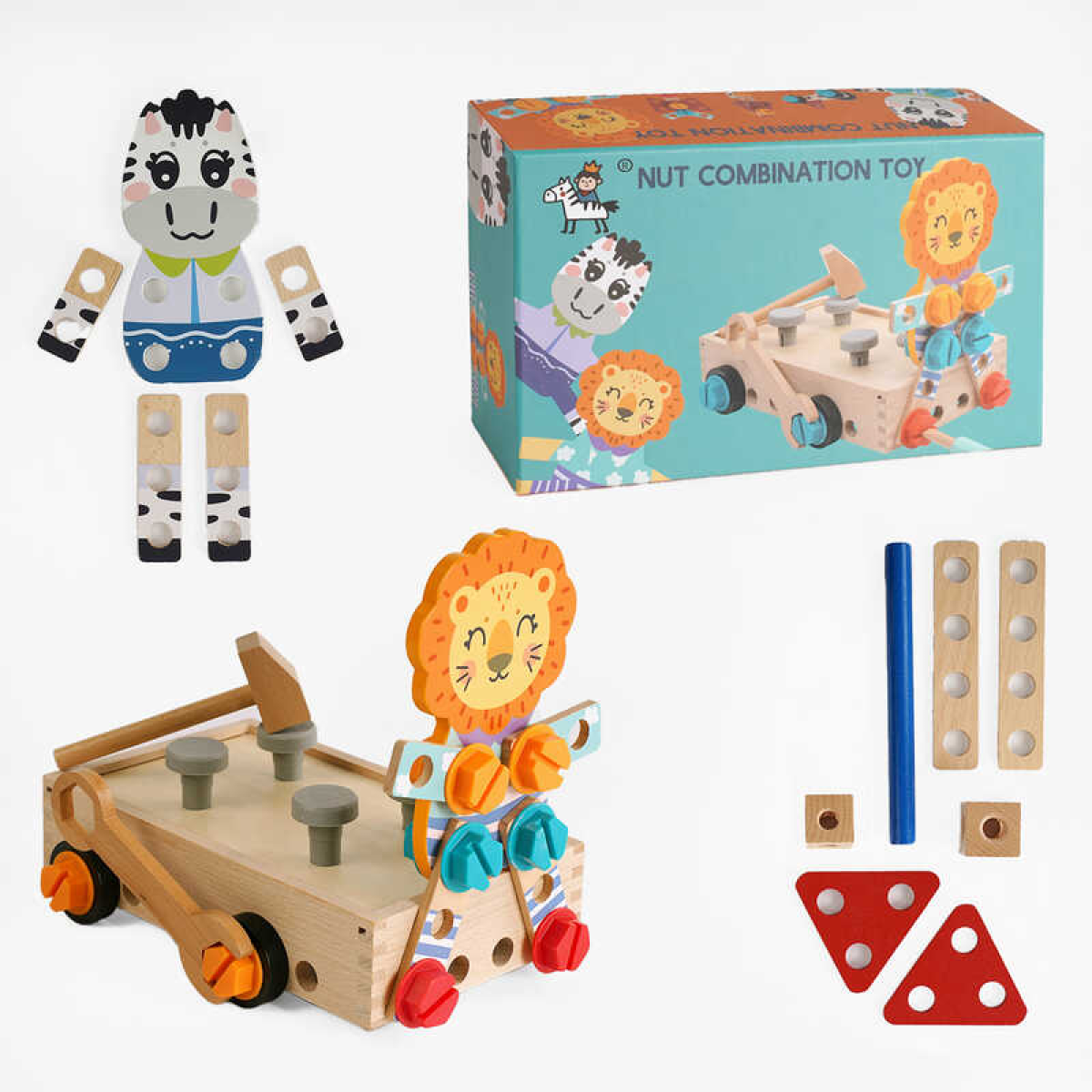 Машинка C 61685 (18) дерев’яна, болти, гайки, молоточок, в коробці