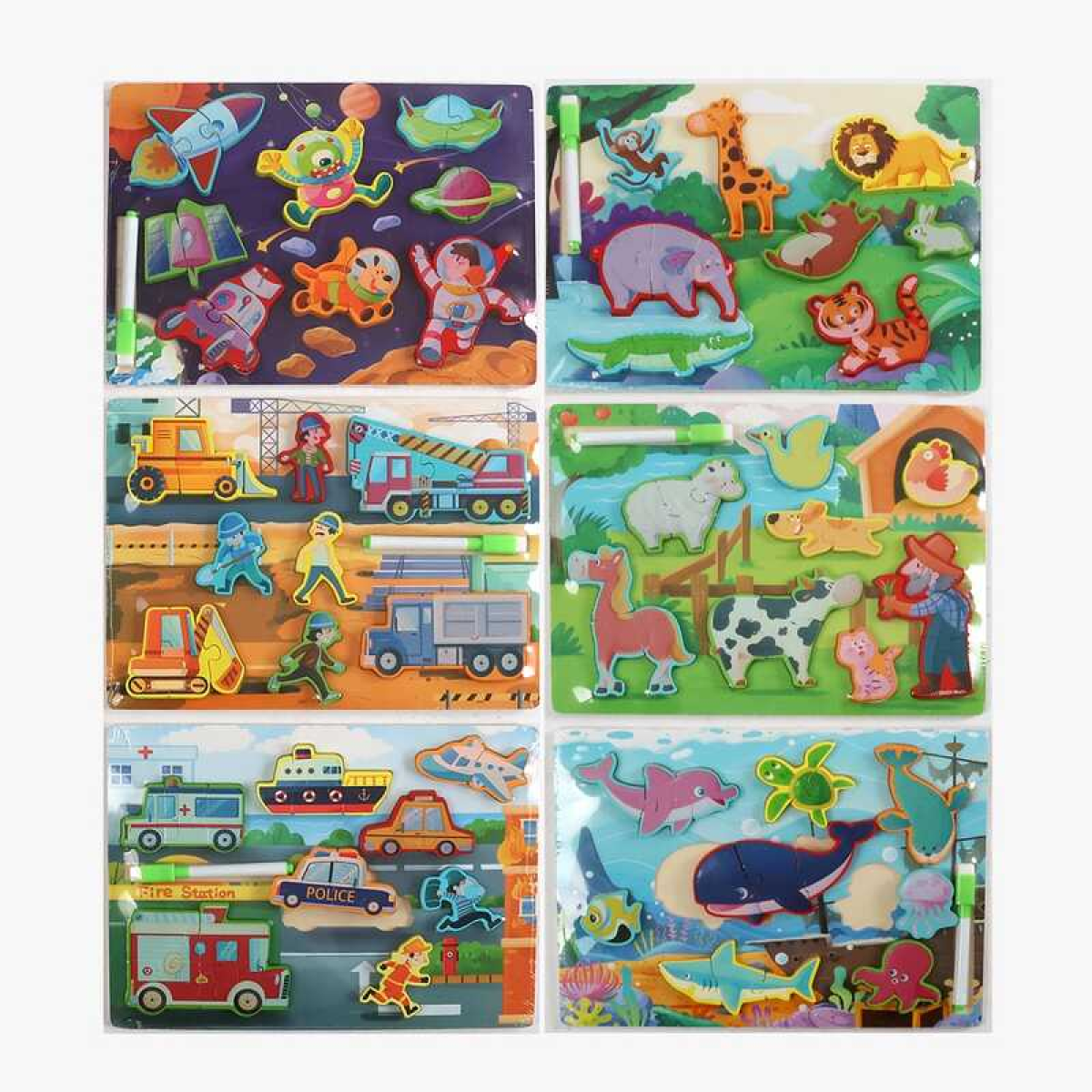 Пазли-вкладиші D 38354 (80) дерев“яні, маркер, у плівці, ВИДАЄТЬСЯ ТІЛЬКИ МІКС ВИДІВ