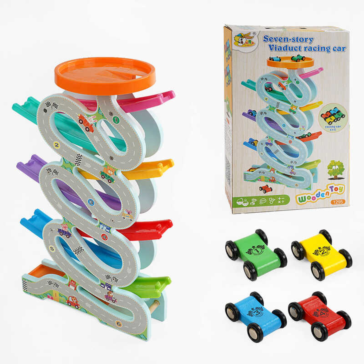 Трек С 65823 (8) дерев’яний, 8 рівнів, 8 машинок, в коробці