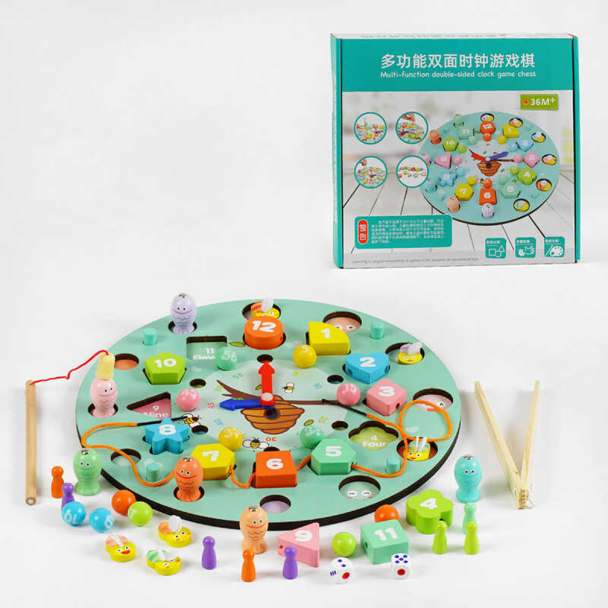 Годинник С 62350 (24) 7 ігор, магнітна риболовля, сортер геометричний, за кольорами, настільна гра, намистини з хвилинами, шнурок, в коробці