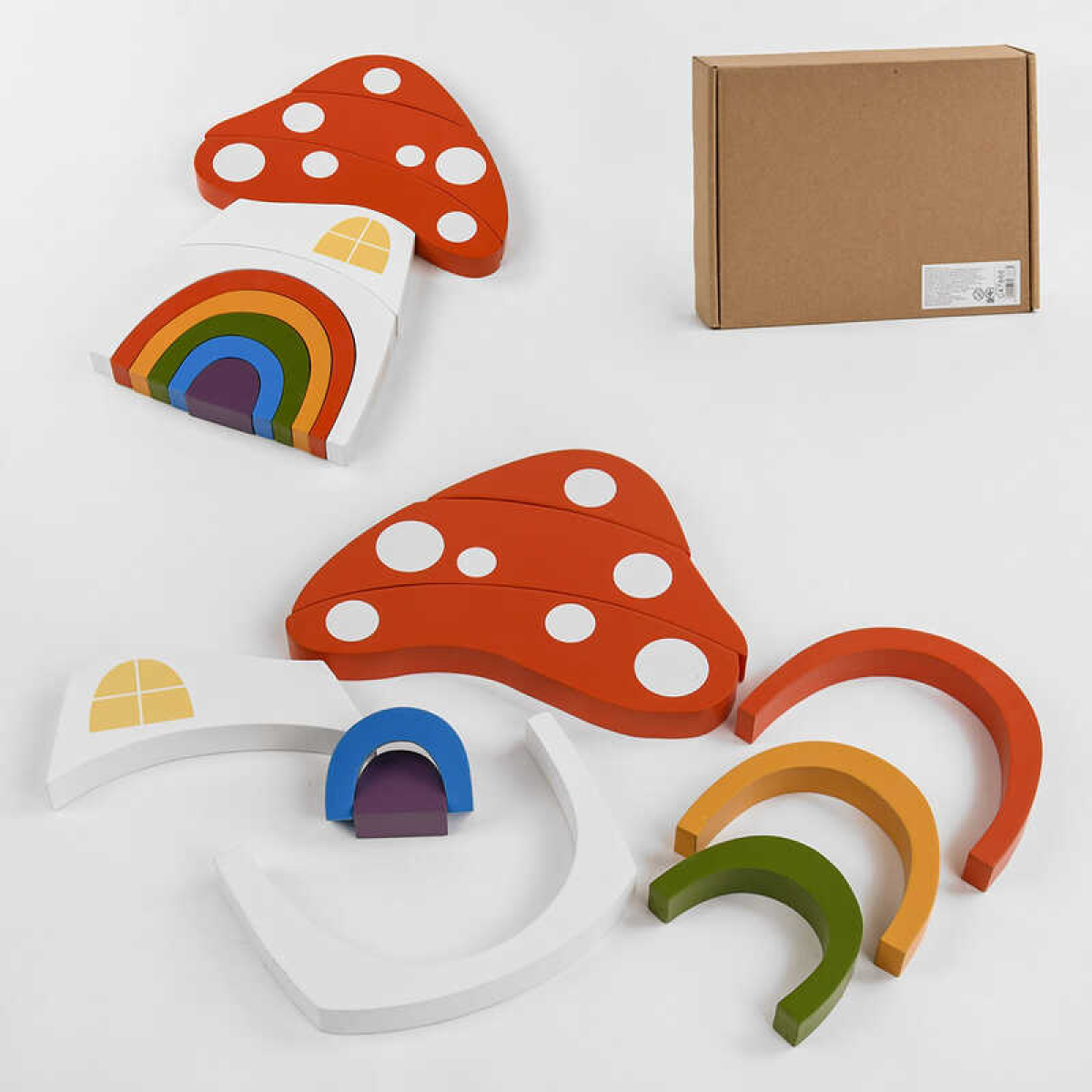 • Дерев“яна гра C 47866 (24) пірамідка “Грибочок“, 10 дугових вкладишів, в коробці