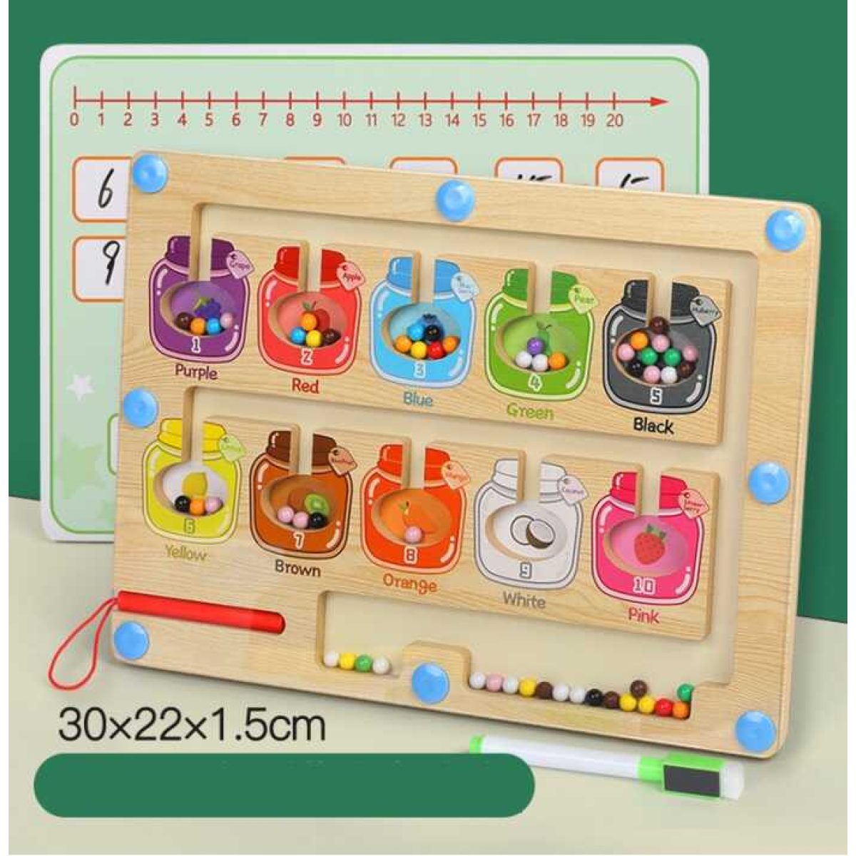 • Дерев“яна магнітна гра C 66171 (40) кульки, магнітна паличка, маркер “пиши-витирай”, шаблони для прикладів, в коробці