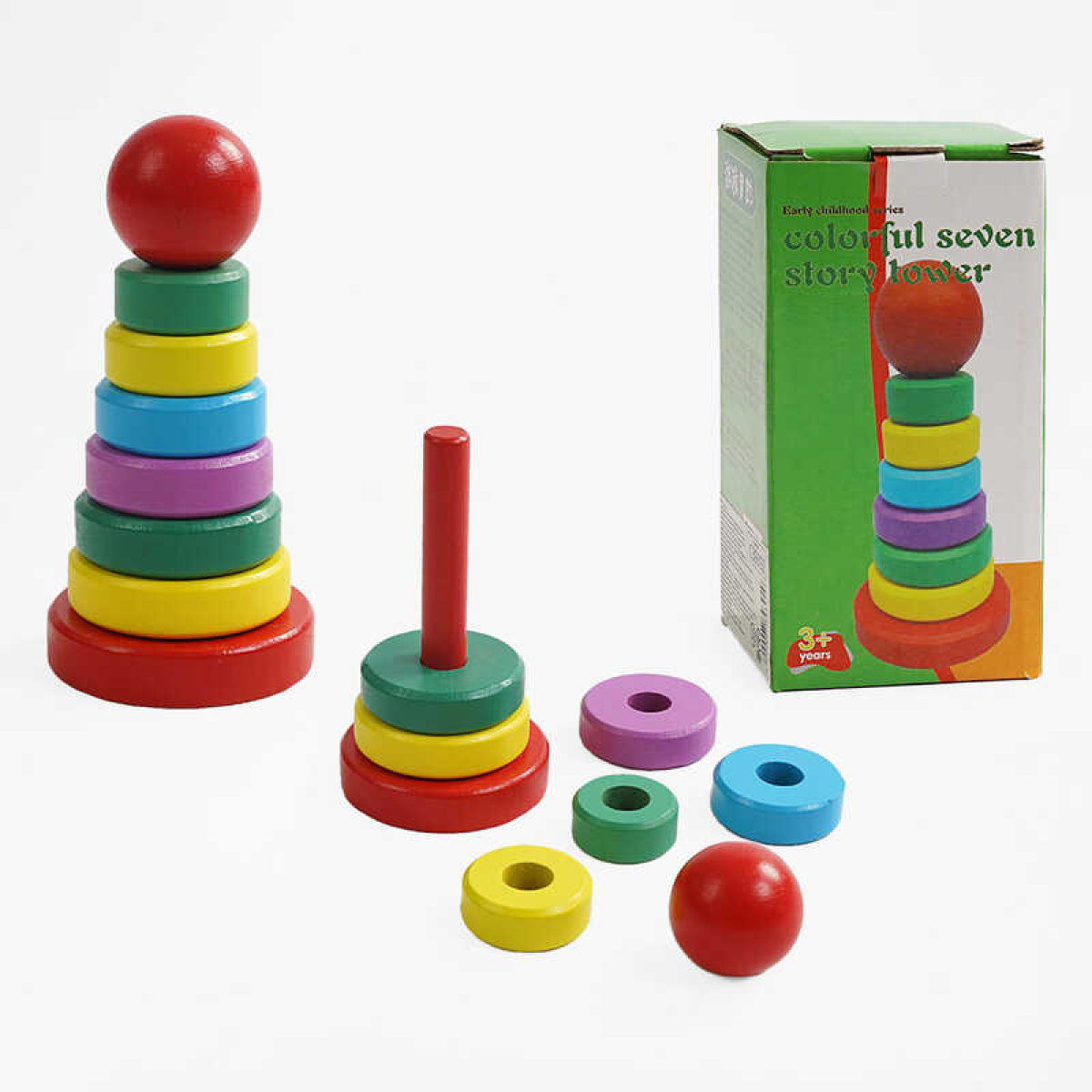 • Дерев“яна пірамідка С 39392 (96) кільця різного розміру, основа, в коробці