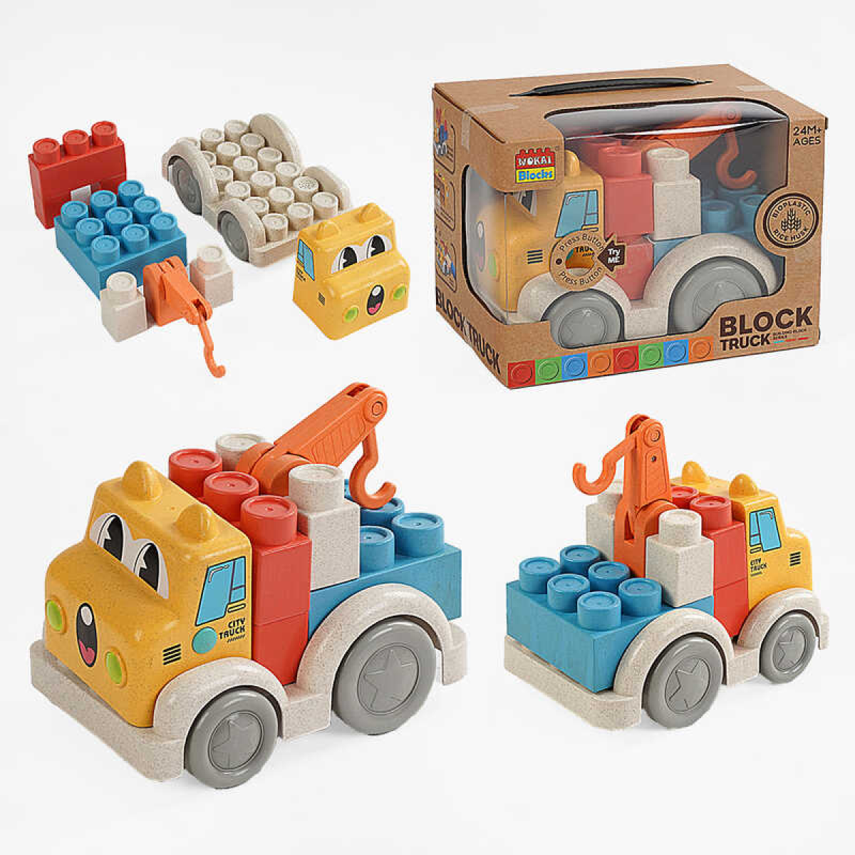 Машина 9910 A (48/2) “Автокран“, підсвічування, звуки транспорту, пісенька англійською, конструктор, в коробці