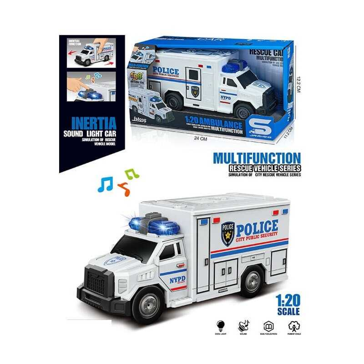 Машина JS 165 A (72/2) “Поліцейський фургон”, звук, підсвітка, масштаб 1:20, гумові колеса, інерція, в коробці