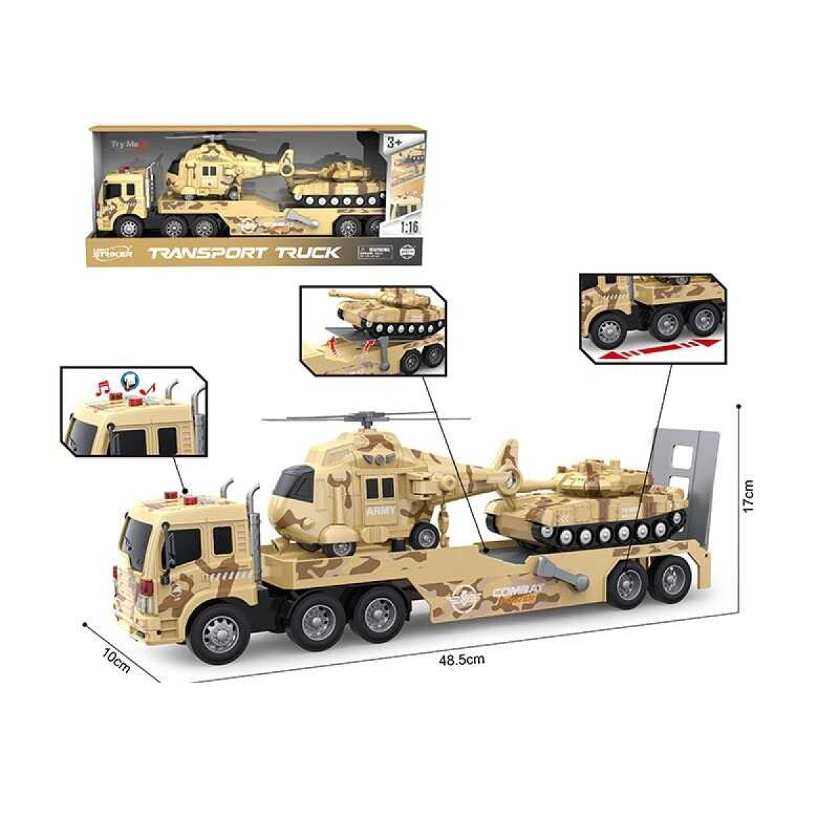 Машина WY 578 F (12) інерція, підсвічування, звуки, рухливі елементи, гумові шини, танк, вертоліт, в коробці