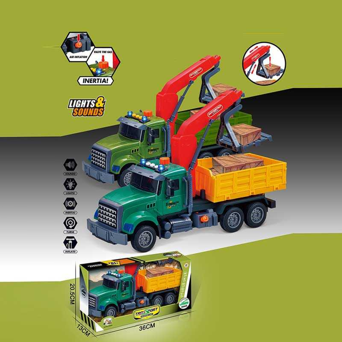 • Машина музична 687-50 A (24/2) ШТРИХ=11377 2 кольори, “Вантажівка“, підсвічування, звукові ефекти, механічне підіймання стріли, інерція, аксесуари, в коробці, ВИДАЄТЬСЯ МІКС ВИДІВ