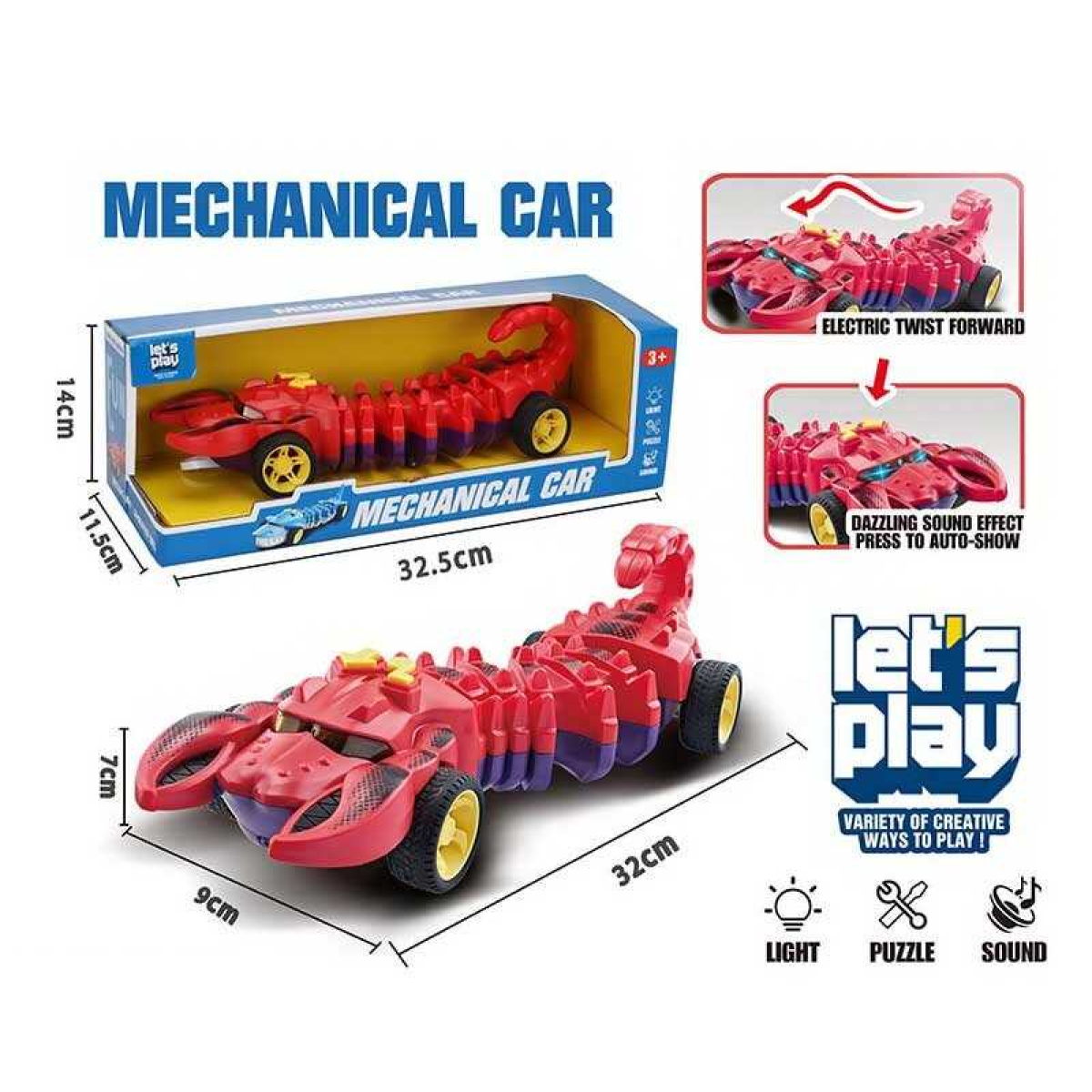 • Машина музична PD 88-12 (36/2) “Скорпіон”, звук, підсвічування, гумові колеса, в коробці