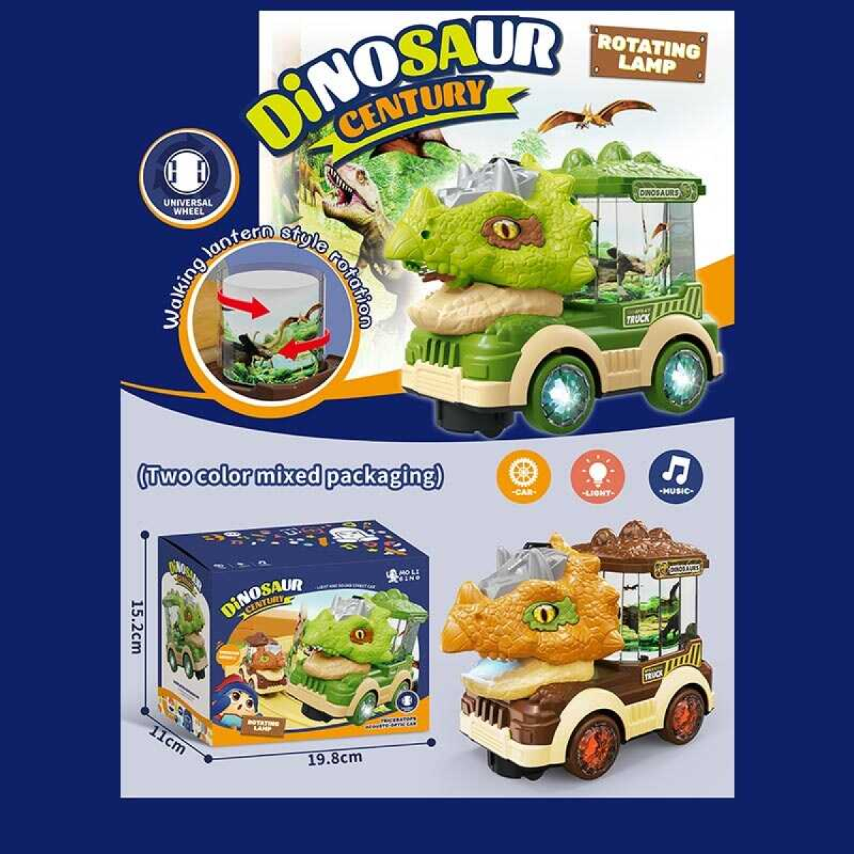 Машина музична QB 59 Y (48) 2 кольори, “Динозавр“, підсвічування, звуки, мелодія, проєкція, колесо вільного руху, в коробці