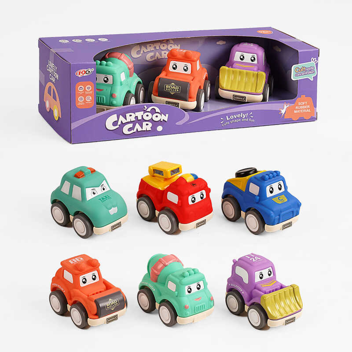 • Набір машин 817 B 2B (72/2) 2 види, 3 штуки, інерційний механізм, підсвічування, гумовий корпус, в коробці