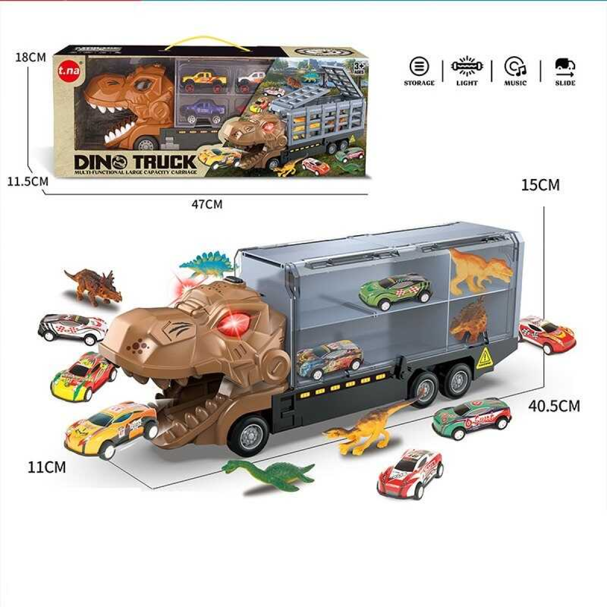 Набір машин TN 1236 AB (24/2) звук, підсвітка, 6 металопластикових машин, 6 динозаврів, трейлер, в коробці