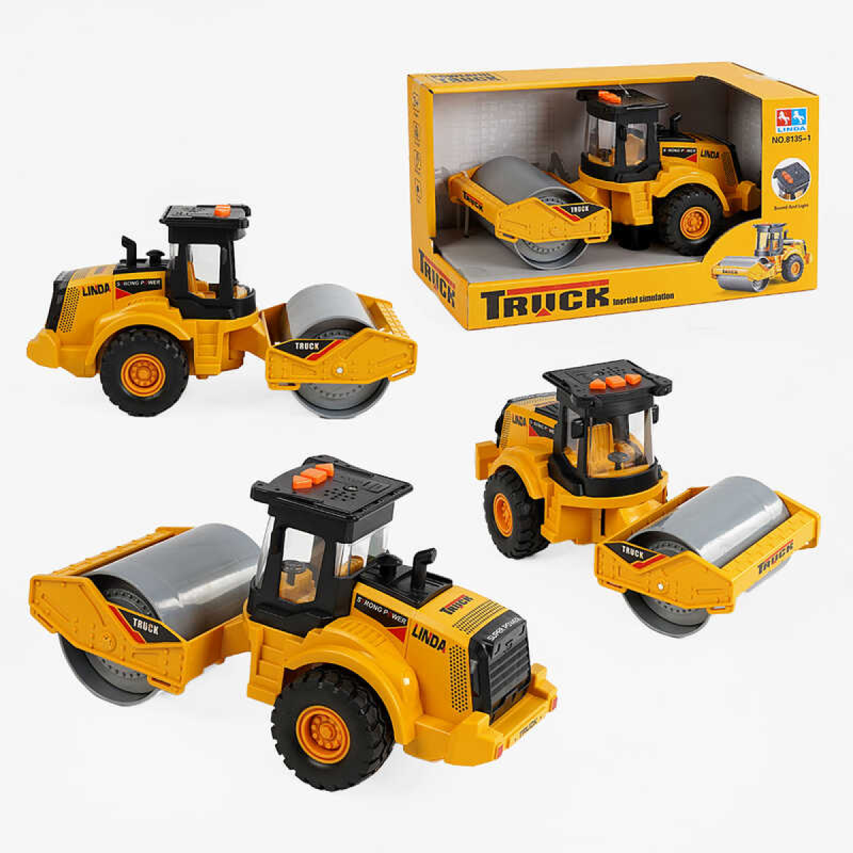Спецтехніка 8135-1 (24/2) асфальтоукладач, інерційний механізм, гумові колеса, підсвічування, звукові ефекти, в коробці