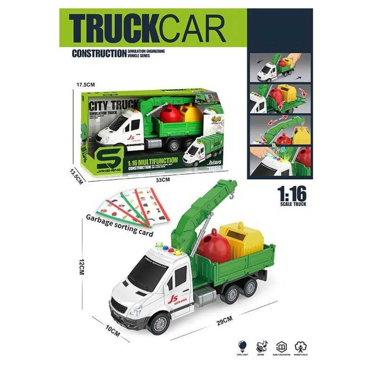 Спецтехніка JS 143 / 143 A (36/2) “Контейнеровоз “, 2 види, світло, звук, інерційний механізм, рухливий кузов, додаткові аксесуари, в коробці