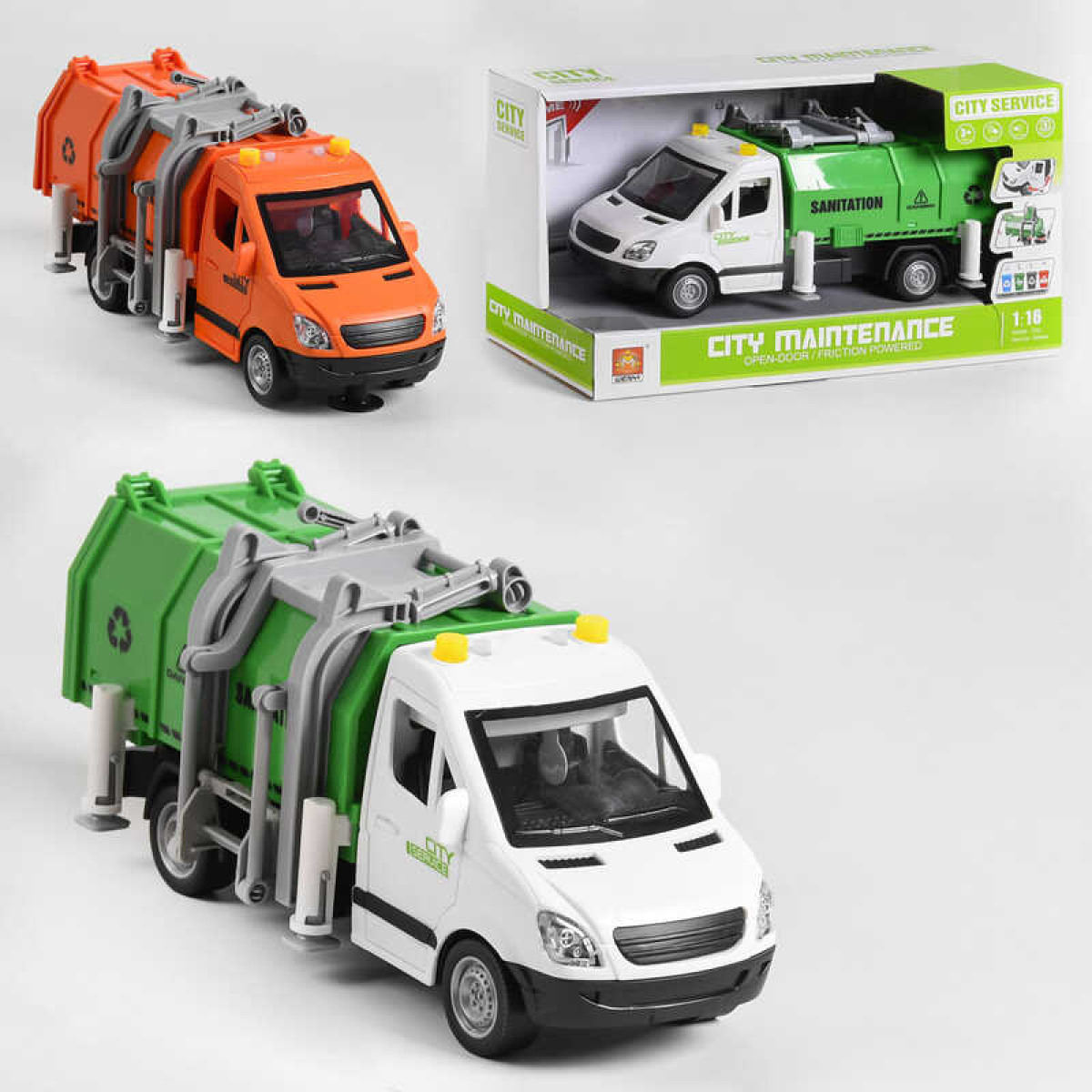 • Спецтехніка WY 592 AB (24) “Сміттєвоз“, 2 кольори, інерція, знімний бункер, відкриваються двері, бічні навантаження, світло, звук, в коробці