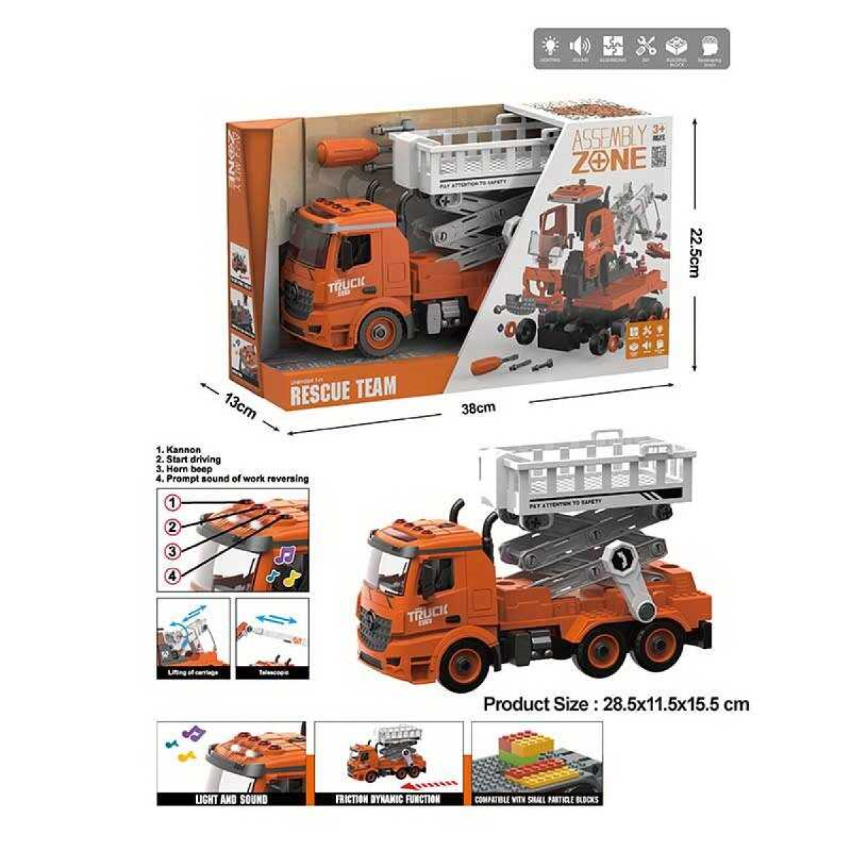 Спецтехніка YW 9092 C (24/2) самоскид, звук, світло, механічне підіймання кузова, інерція, рухомі деталі, викрутка, 2 насадки, в коробці
