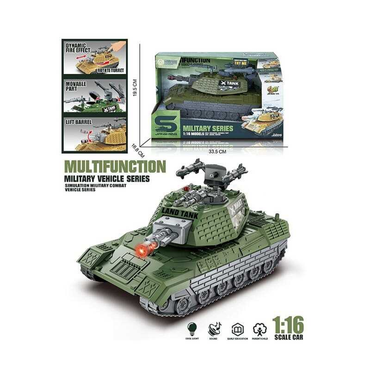 Танк JS 206 (24/2) автоматична вібрація дула, масштаб 1:16, підсвічування, інерція, на батарейках, рухома башта з тріскачкою, в коробці