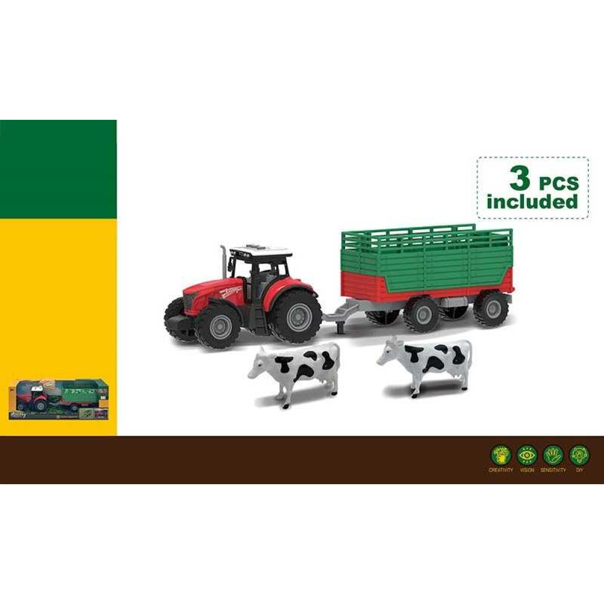 Трактор 550-35 K (36/2) підсвічування, звуки транспорту, інерція, гумові колеса, 2 корови, причіп від’єднується, в коробці
