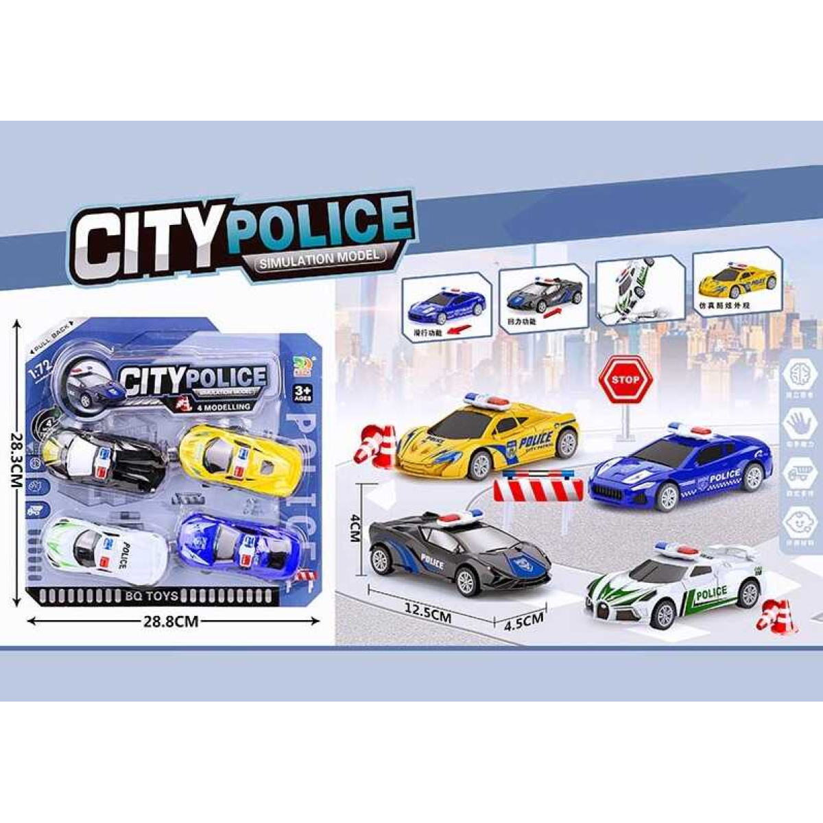 • Набір машин BQ 600-49 (96/2)  4 штуки, поліція, інерція, на листі