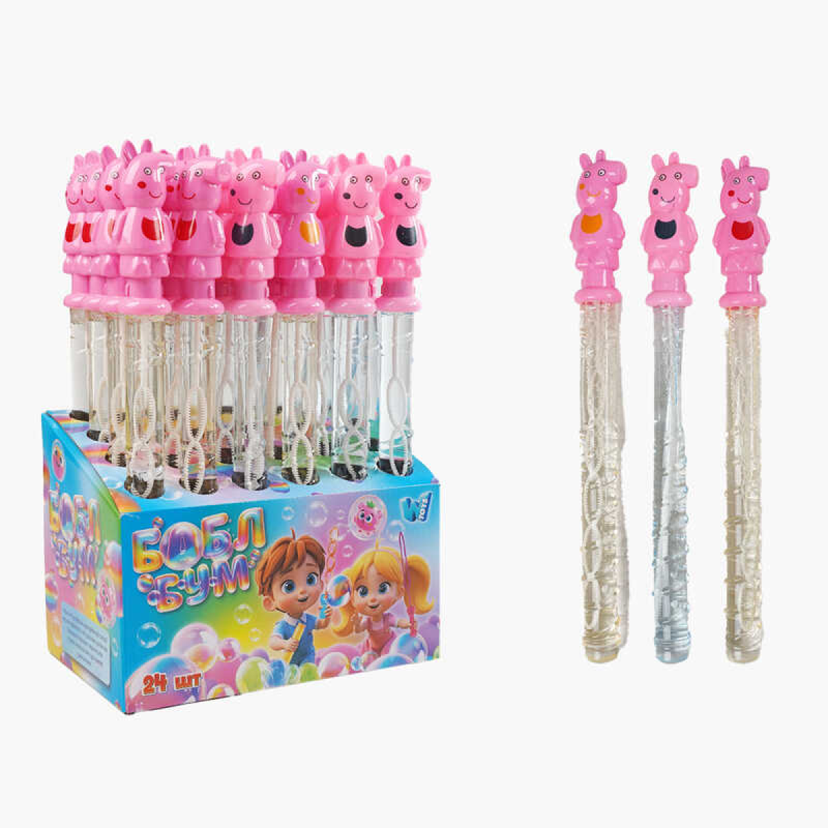 Мильні бульбашки LK 96108 (6) “WToys“, ЦІНА ЗА 24 ШТУКИ В БЛОЦІ, “Свинка“, висота 36см, в коробці