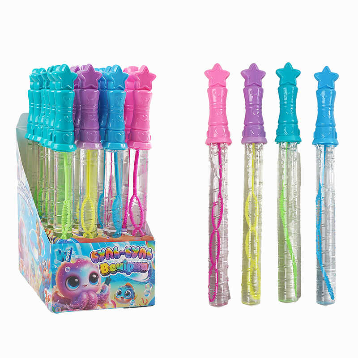 Мильні бульбашки TC 90774 (12) “WToys“, ЦІНА ЗА 24 ШТУКИ В БЛОЦІ, “Чарівна паличка“, висота 25см, в коробці