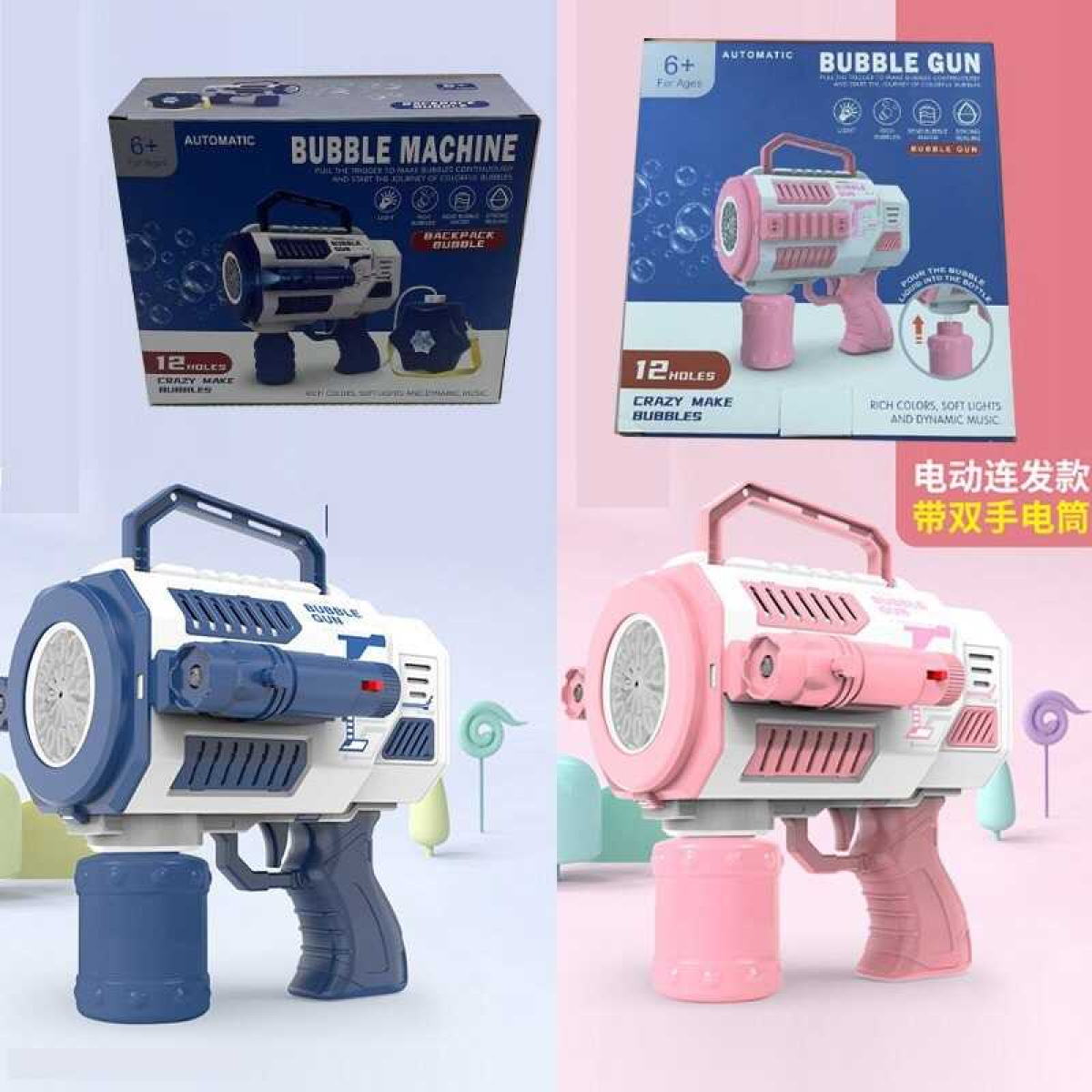Пістолет з мильними бульбашками 88-1 (60) 2 види, розмір - 17х9х15 см, автоматичний принцип, 2 ліхтарики, підсвічування, музика, пляшечка з мильним розчином, акумулятор 3.7 V, USB - кабель, в коробці