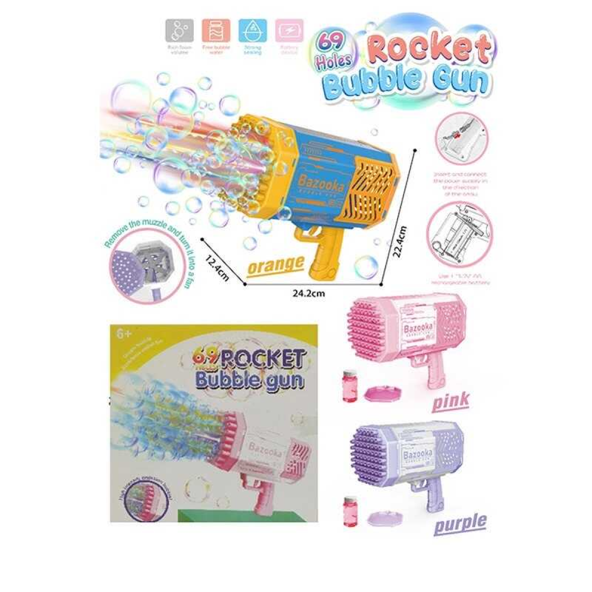 • Пістолет з мильними бульбашками HT 026 (24) 3 кольори, підсвічування, автоматичний принцип, 69 отворів, акумулятор 3.7V, в коробці, ВИДАЄТЬСЯ ТІЛЬКИ МІКС ВИДІВ