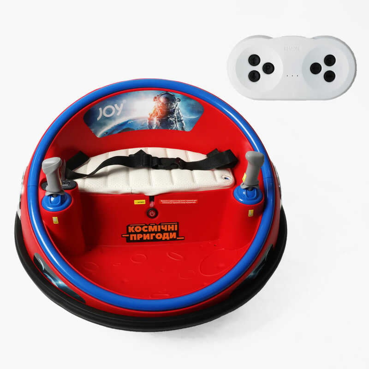 Космічний корабель JOY UF-02369 (1) двигуни 2*35W, акумулятор 12V, 4,5Ah, підсвічування, мелодії, пісні англійською мовою, регулювання гучності, ремені безпеки, пульт дистанційного керування, в коробці