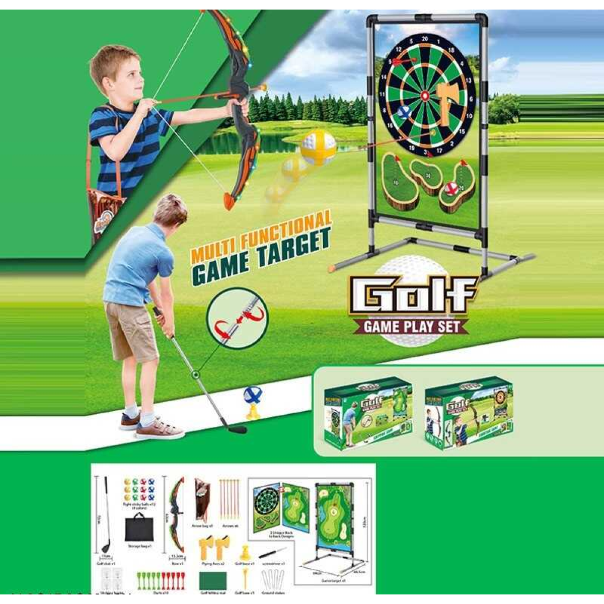 Спортивні ігри 7888-35 A (6) підсвічування, гольф, дартс, лук, стріли, дротики, сумка, ключка, в коробці