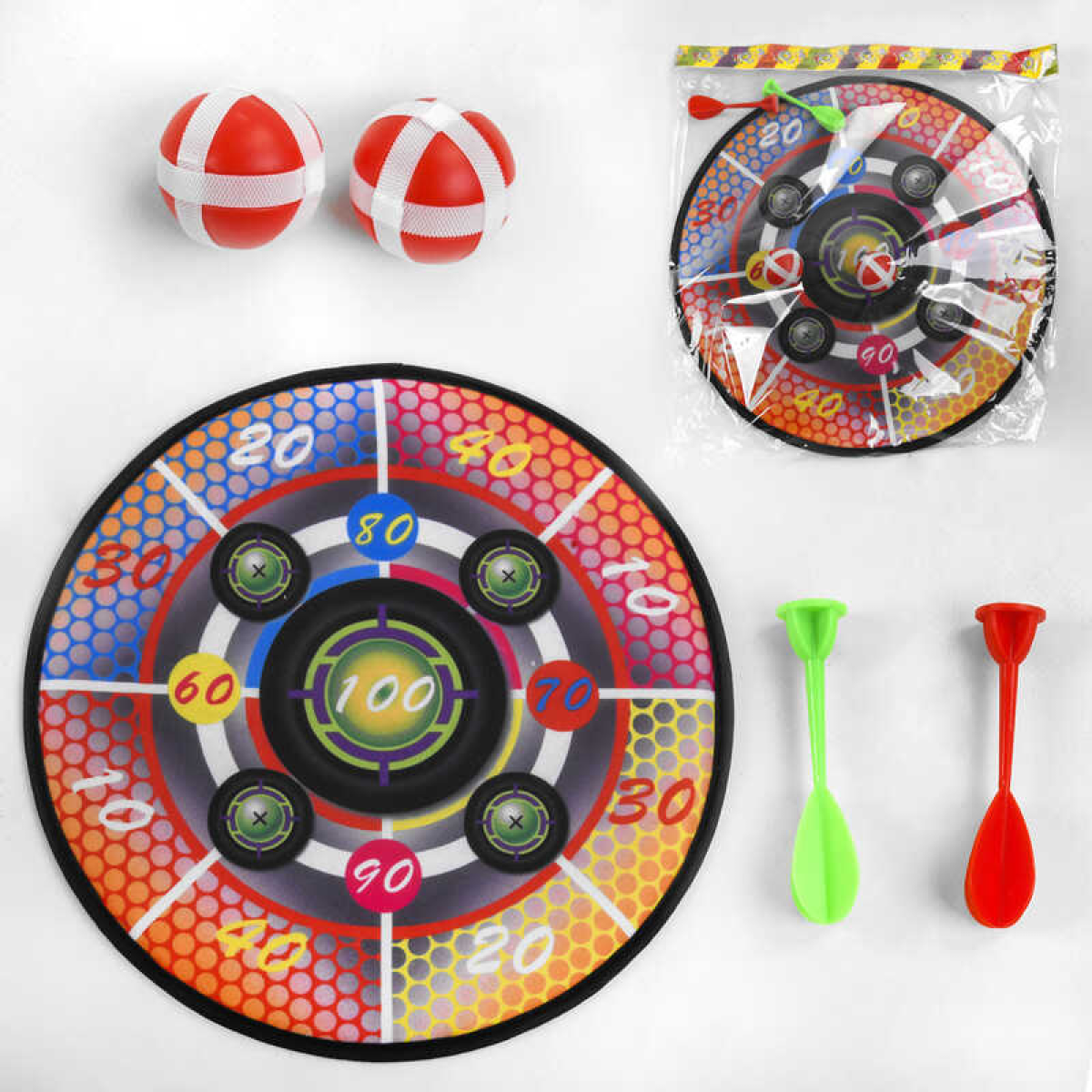 Дартс на липучках 999-5 (180/2) односторонній, діаметр 35.5см, 2 дротики, 2 кульки, гачок для підвішування, в пакеті
