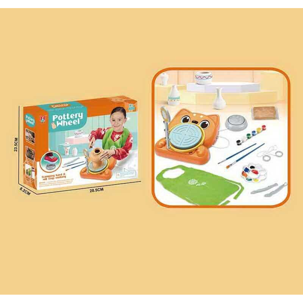 Набір для гончарства XJ 559 (24) електричне коло для гончарства, від мережі, глина, інструменти, фарби, палітра, пензлики, фартух, в коробці