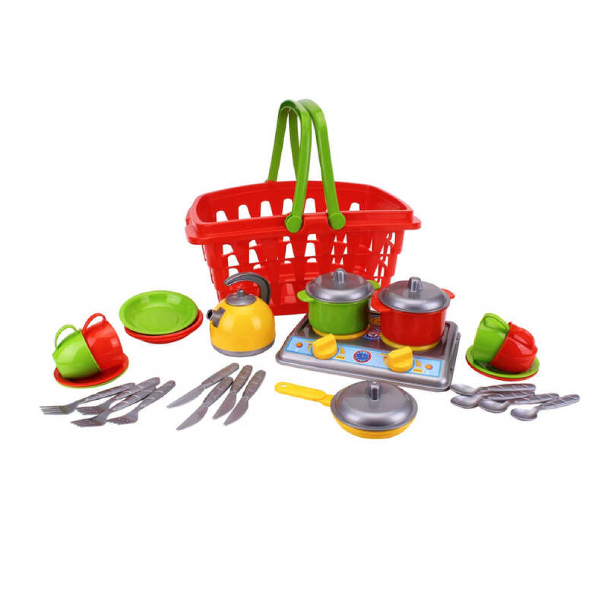 гр Набір посуду “Галинка 10“ 1172 (4) “Technok Toys“, набір на 4 персони, плита, каструлі, пательня, чайник, кошик для продуктів, в пакеті