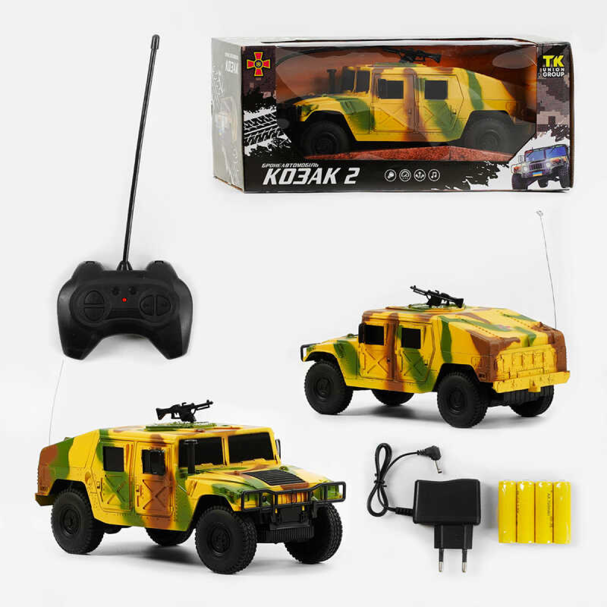 • Машина на радіокеруванні 60674 (24) “TK Group”, “Бронеавтомобіль Козак”, звуки, підсвічування фар, на батарейках, що перезаряджаються, в коробці