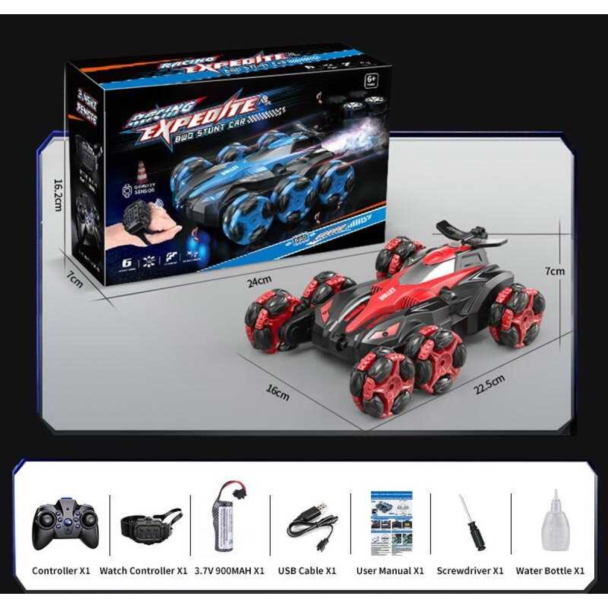 Машина на р/к 878 B-1 (30) 3 кольори, роликові колеса, парогенератор, світло, звук, мелодія, акум. 3.7 V, пульт 2.4 GHz, сенсорний браслет, підіймає колеса, в коробці, ВИДАЄТЬСЯ ТІЛЬКИ МІКС ВИДІВ
