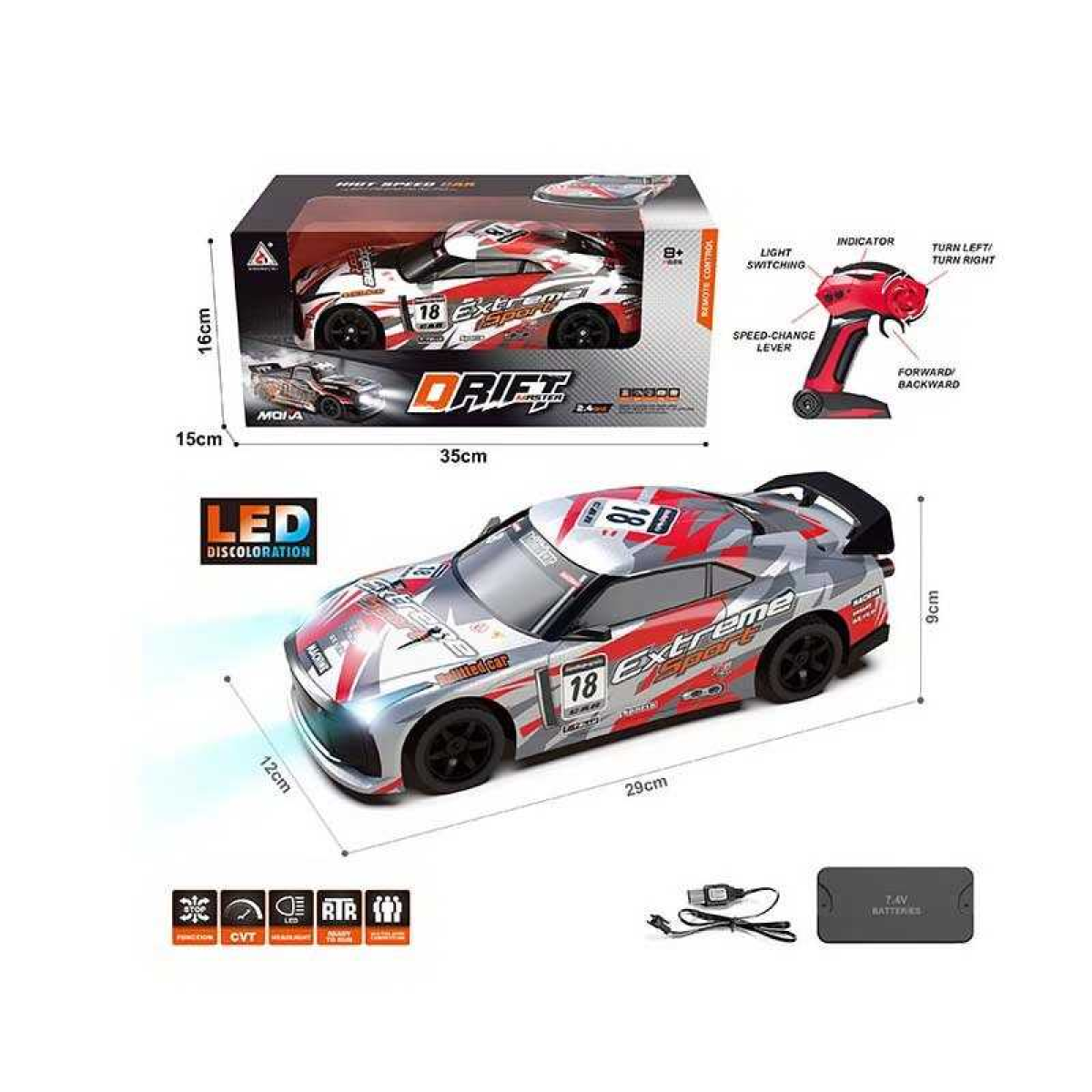 Машина на радіокеруванні 2077 (24) підсвічування, акумулятор 7,4V, USB кабель, пульт 2,4 Ghz, в коробці