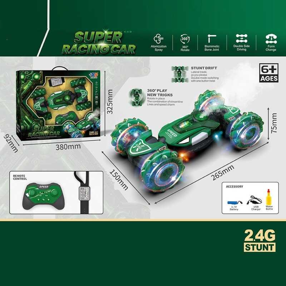 Машина на радіокеруванні 3688 G 165 A (24) акумулятор 3.7 V, пульт 2.4 G, парогенератор, підсвічування, мелодії, роликові колеса, в коробці