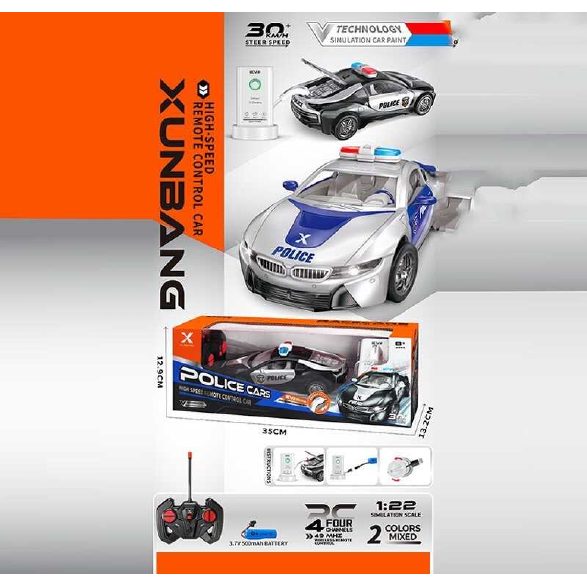 Машина на радіокеруванні KS 27 Y (36) 2 кольори, акумулятор 3.7V, пульт 49 MHZ, масштаб 1:22, підсвічування, гумові шини, зарядна станція, в коробці