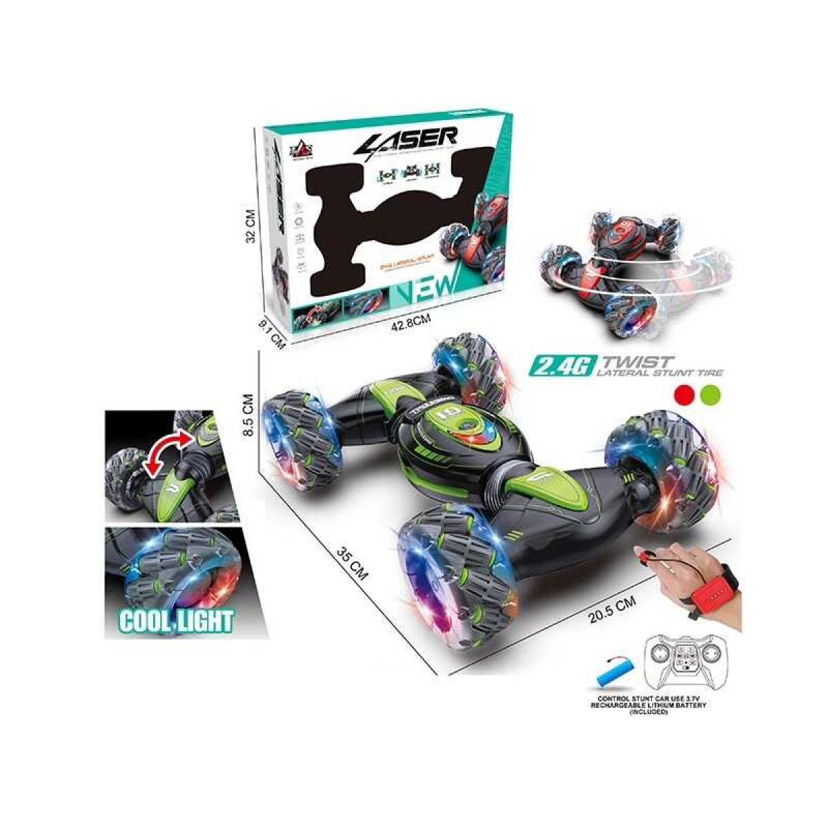 Машина на радіокеруванні RQ 3044 (16) акумулятор 3.7 V, пульт 2,4 G, браслет, роликові колеса, підсвічування, трансформація корпусу, мелодія, в коробці