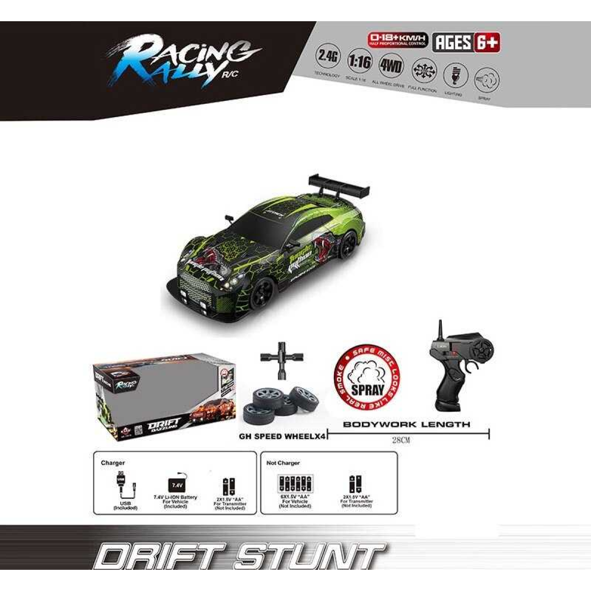 Машина на радіокеруванні SC 16 A 13 (12) масштаб 1:16, акумулятор 3.7V, пульт керування 2.4 GHz, дрифтує, 4WD, змінні колеса, підсвічування, парогенератор, в коробці