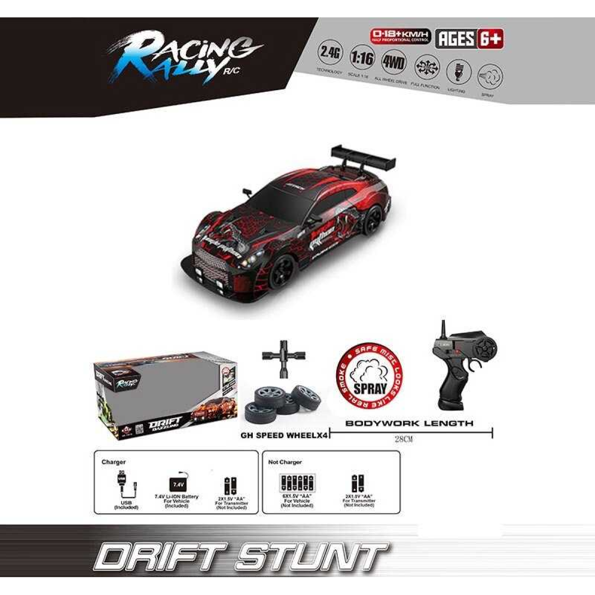 Машина на радіокеруванні SC 16 A 14 (12) масштаб 1:16, акумулятор 3.7V, пульт керування 2.4 GHz, дрифтує, 4WD, змінні колеса, підсвічування, парогенератор, в коробці