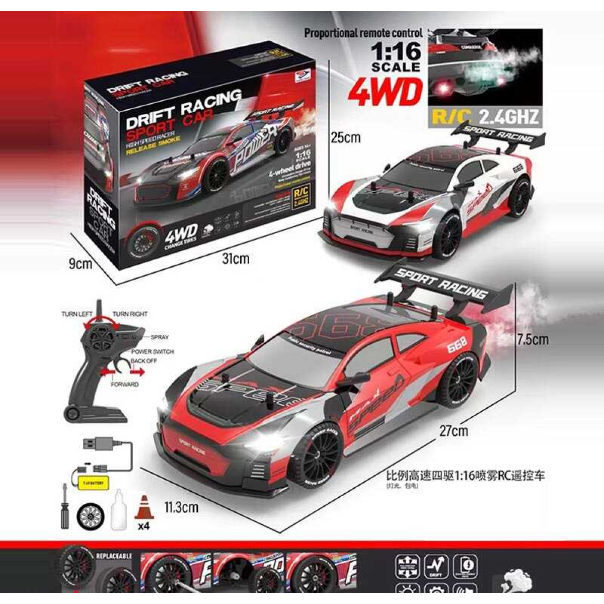 • Машина на радіокеруванні YF 668 RC 2 (24) 2 кольори, акумулятор 7.4 V, пульт 2.4 GHZ, 4WD, підсвічування, парогенератор, 2 комплекти коліс, в коробці