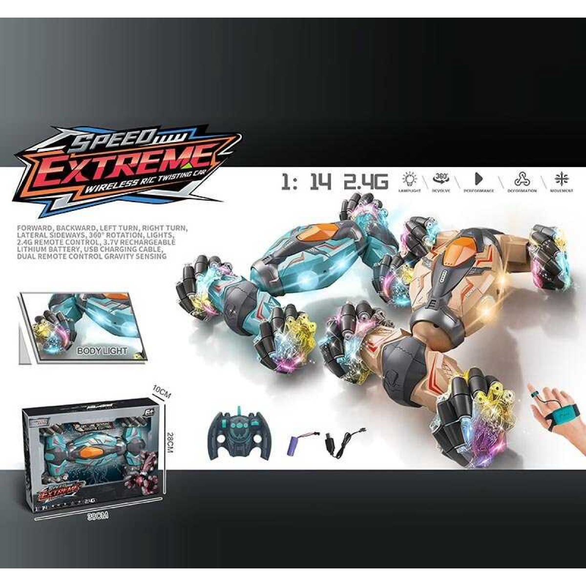Машина на радіокеруванні YJ 098-3 A (24) 2 види, браслет+пульт, акум. 3,7 V, 4х4, звук, підсвічування, пульт 2,4 GHz, в коробці