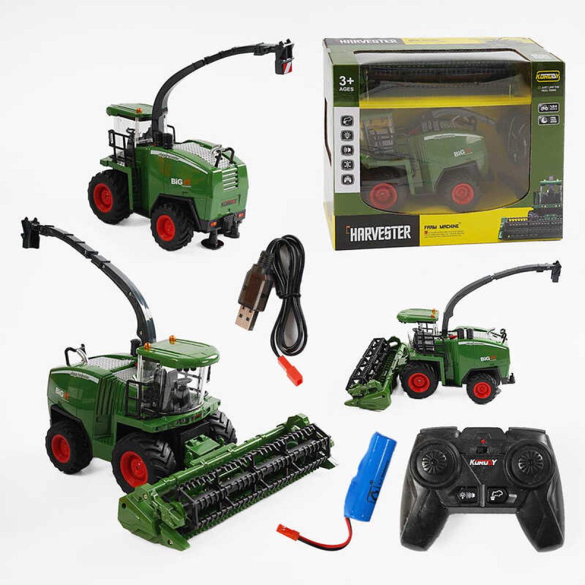 Комбайн на радіокеруванні 6605 (16) підсвічування, звук, акумулятор 3.7V, пульт 2.4GHz, USB-кабель, гумові колеса, парогенератор, масштаб 1:24, в коробці