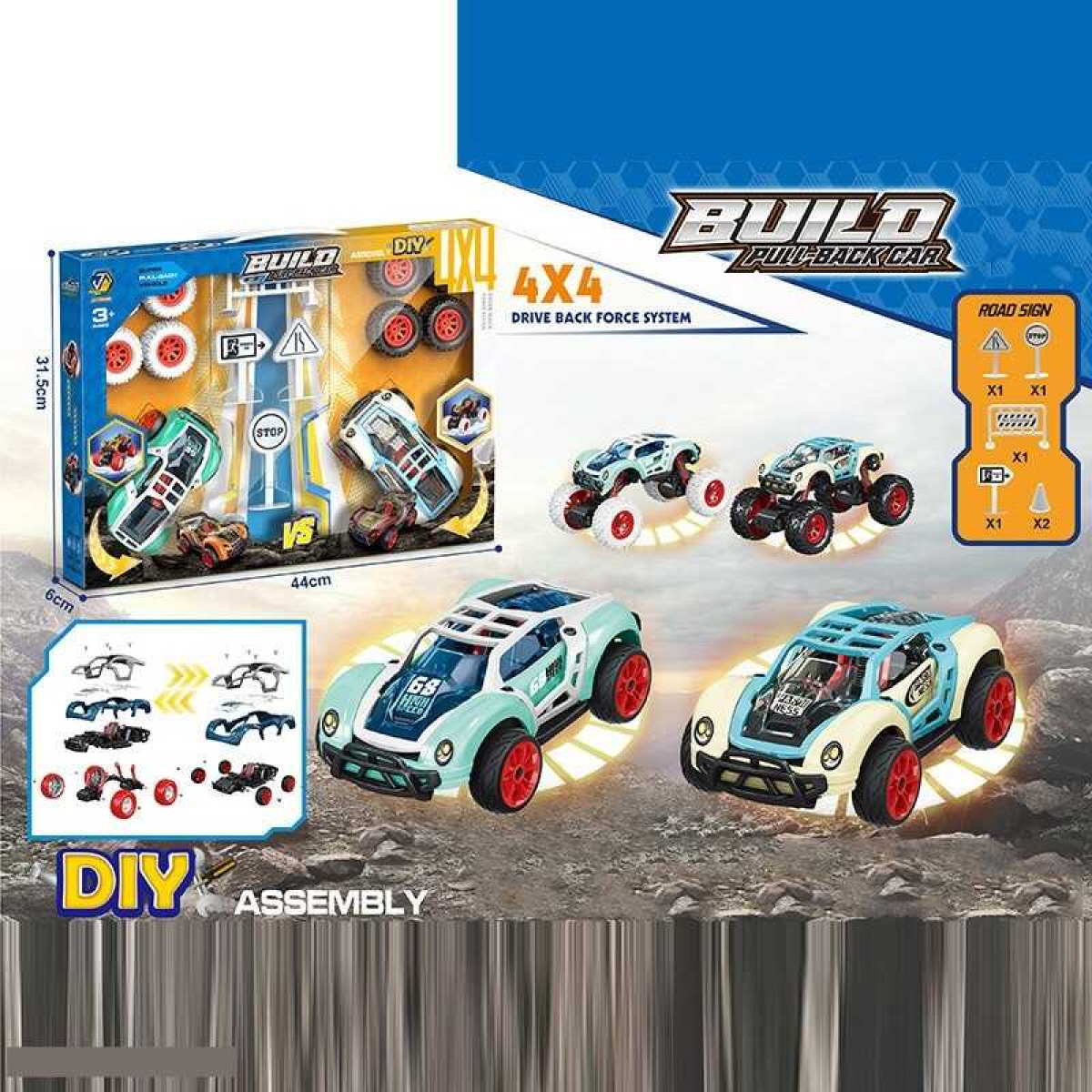 Машинки-конструктори 65277 (24/2) 2 машинки, інерція, 2 набори коліс, гумові шини, інструменти, в коробці