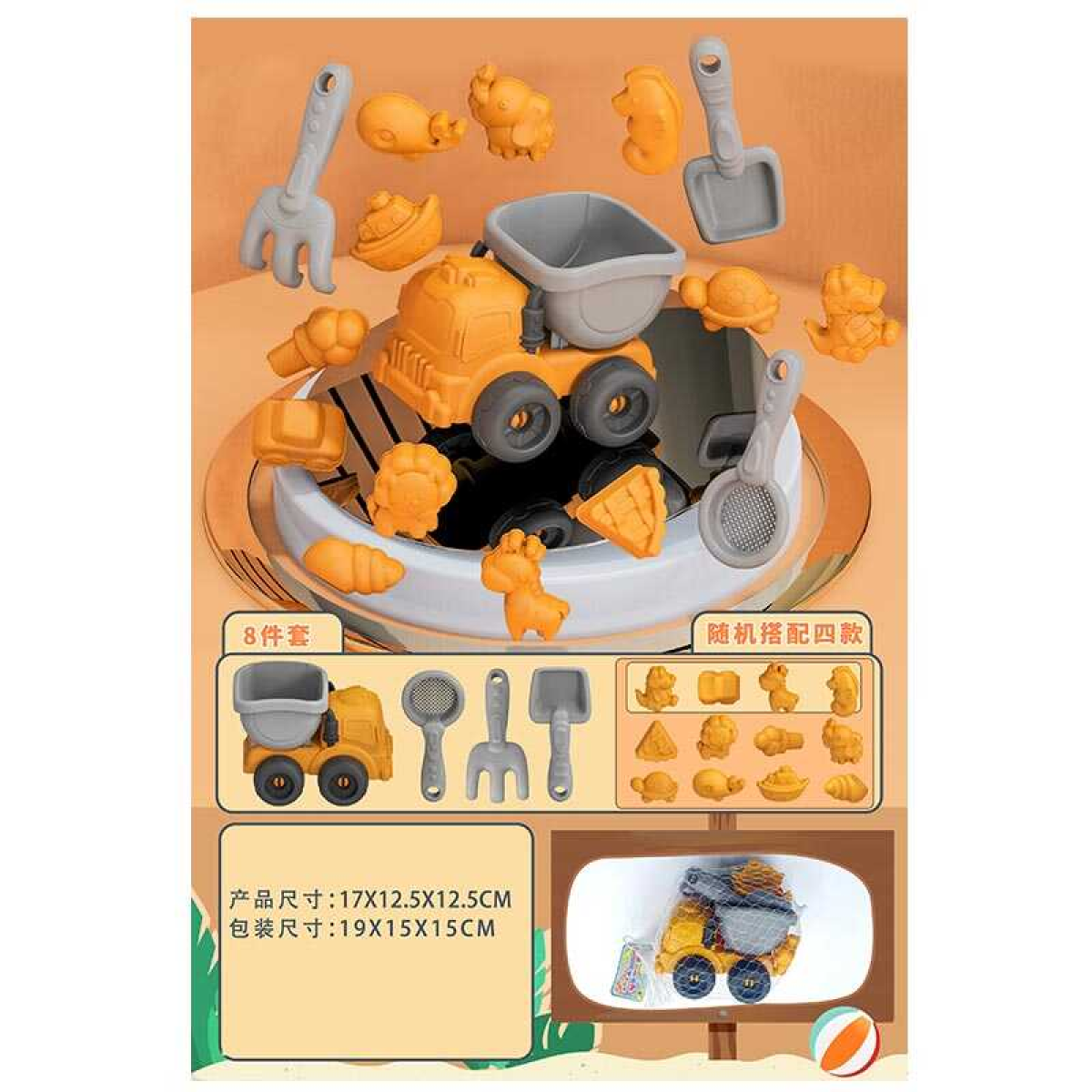 Пісочний набір 913-327 (96/2) розмір самоскида - 17х12.5х12.5 см, сито, лопатка, граблі, 3 формочки, рухомі елементи, в сітці