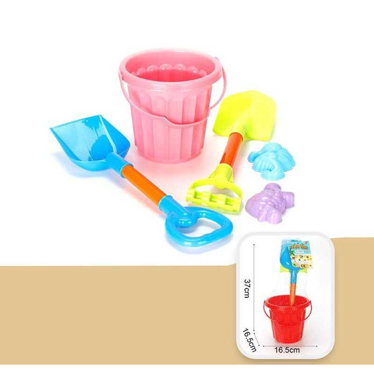 Пісочний набір JX 6848 (63) відро - 16 см, 2 лопати, 2 формочки, в сітці