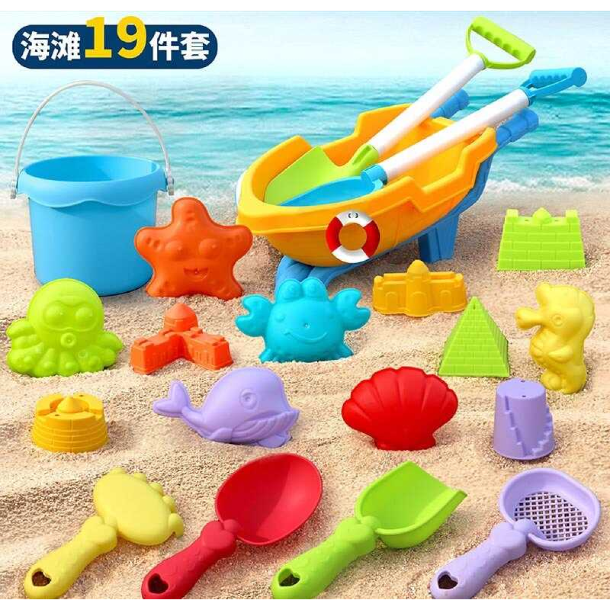 Пісочний набір W 218-45 (30/2) розмір тачки - 27х13х11 см, висота відра - 9 см, граблі, сито, 4 лопатки, 11 формочок, в сітці