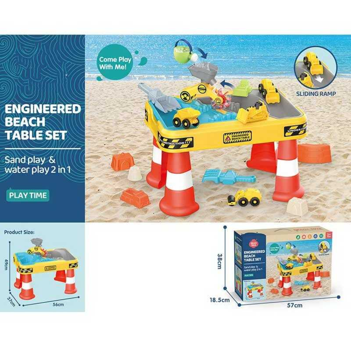 Пісочниця HG 1247 (6) розмір столу 563749 см, будівельна техніка, гірка, формочки для піску, лійка, лопатки, в коробці