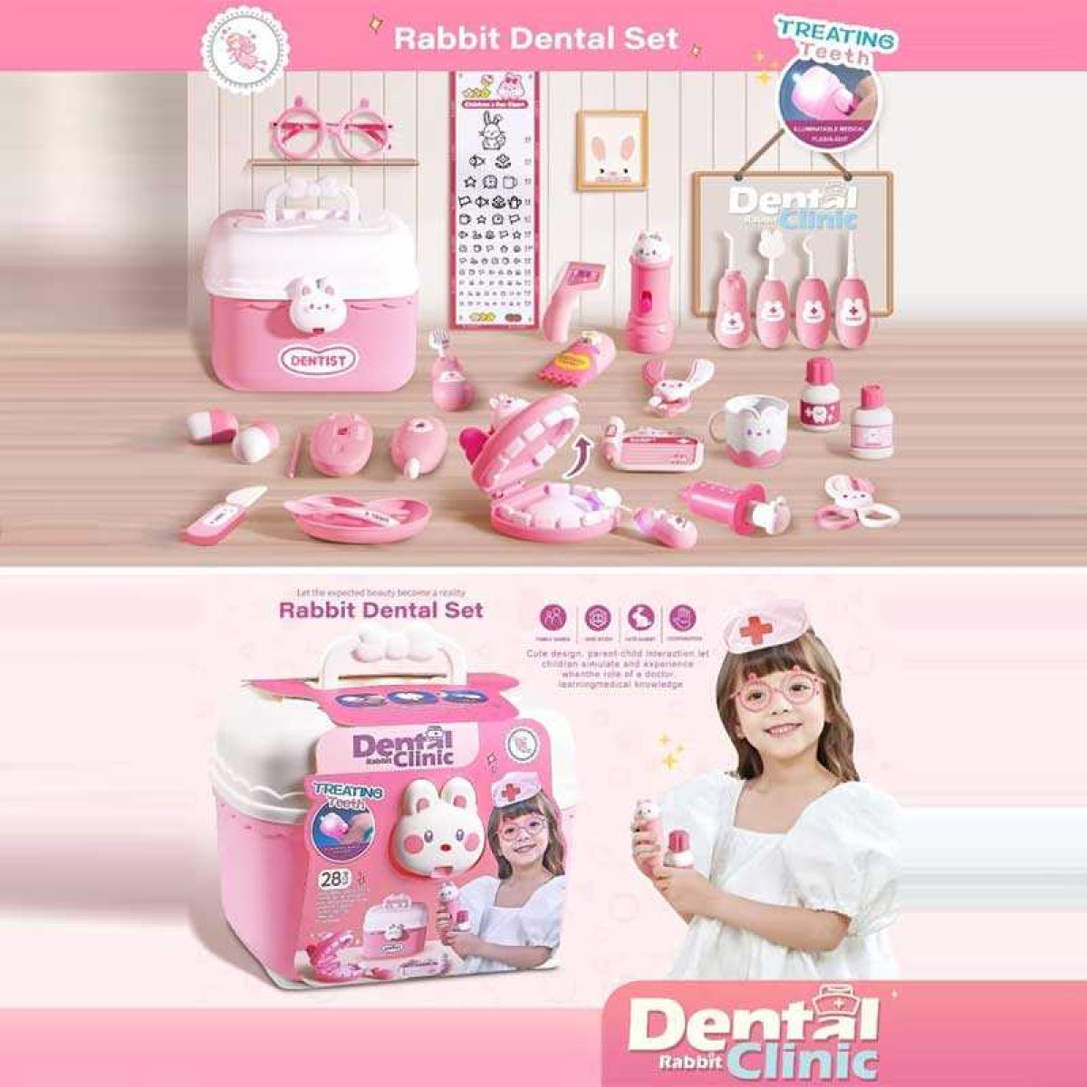 Набір лікаря 6697 (32) 28 іграшок, медичний ліхтарик підсвічується, демонстраційна модель щелепи, шприц, термометр, окуляри, чашка, пігулки, у боксі